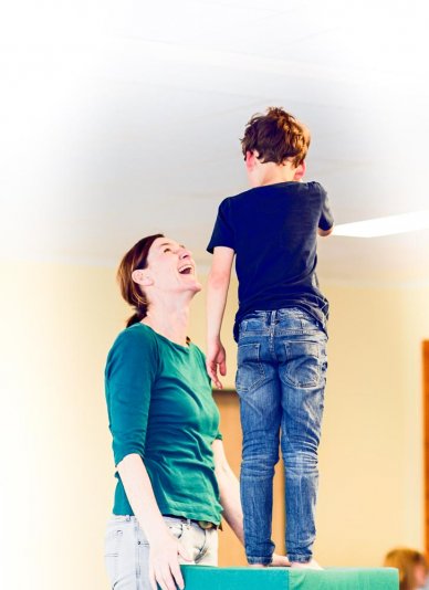 Die Kinder finden über das lustvolle Spielen und Bewegen in Beziehung zum Anderen, hin zu tiefer Rückversicherung gegenüber ihren Ängsten. Sich fallen lassen und aufgefangen werden – nicht nur der Körper, auch die Emotionen. Sich verstecken und gefunden werden. Das sind nur einige Spiele, die die Kinder aus sich heraus in unserem Raum spielen. In diesen Spielen sind tiefgreifende Fragen verborgen:
